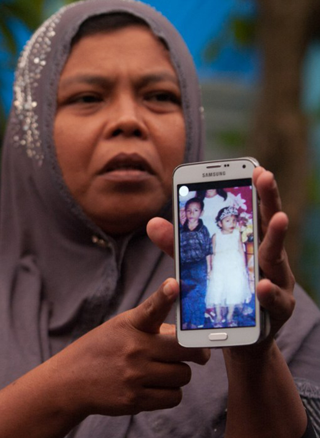 Jamaliah displays a picture taken before the 2004 tsunami of her two missing children, daughter Raudhatul Jannah and son Arif Pratama Rangkuti in Meulaboh, Aceh province. - AFP Photo/Chaideer Mahyuddin