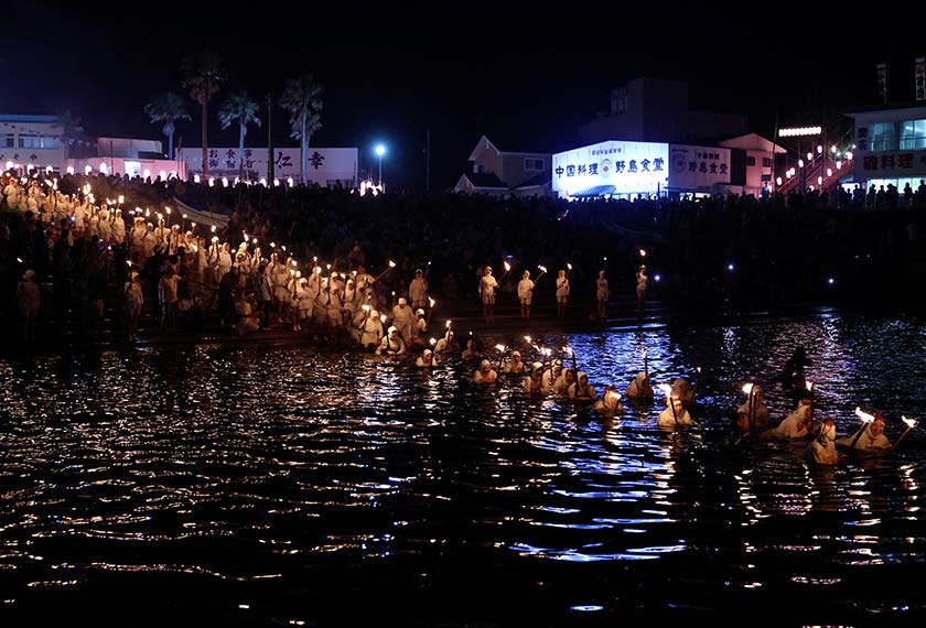 MINAMIBOSO, Japan: Bearing torches that lit up the night as they swam out into the ocean, Japan's storied "ama" prayed for an abundant catch in a ceremony held by these female free divers for decades.