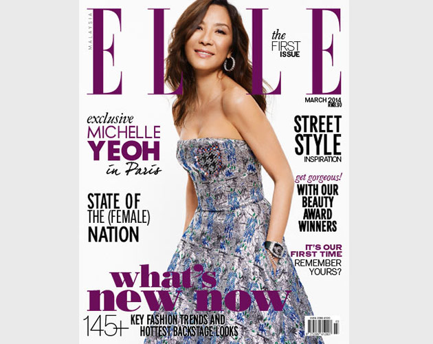 Aimed to level with the standards of its predecessors in the ELLE family, ELLE Malaysia unveiled its first issue (March 2014) with a high-profile bang. For astutely gracing the magazine's first cover with a bedazzling presence was Tan Sri Michelle Yeoh herself. The screen siren – who made us all proud when she rose to international stardom exclusive only to Western Hollywood A-listers once upon a time – was a breathtaking vision in Christian Dior. Her gown, with its light-reflecting surface and rigid silhouette, is an overwhelming presence that’s typical of the brand, but Yeoh managed to tame it with her signature minimalist allure and made the look all her own, thus proving the old adage that we should always wear our clothes, and not the clothes, us.