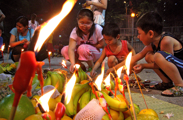 People give offerings and burn paper money for the spirits. - AFP Photo/Richard A. Brooks