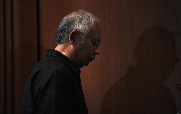 Najib, in black, walks out after a press conference with his head down. The year has been a tough one for the Prime Minister, with huge responsibilities on his shoulders to ensure that Malaysia recover from the triple-tragedy.