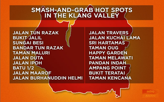 In Kuala Lumpur alone, three other districts have recorded a high number of smash-and-grab cases.