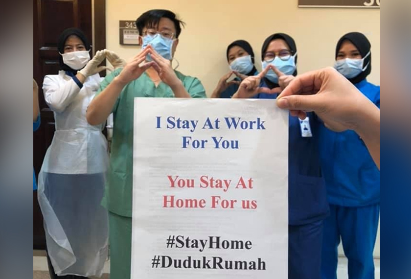The post is a reminder to Malaysians that staying home not only curbs the spread of COVID-19 but lightens the burden of many medical experts during this crucial time.