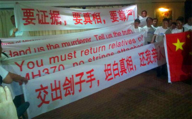Angry relatives of the Chinese passengers on board MH370 took to the streets in protest, demanding the ‘truth’ and accusing the Malaysian government of being ‘murderers”.