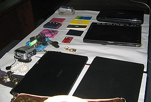 “Four men aged between 30 and 40 were arrested and when police checked on their Honda CR-V sports-utility vehicle (SUV), they found that it was full with several stolen loots like handphones, residential area’s access cards, handbags cameras and other items worth RM400,000,” said Zakaria.