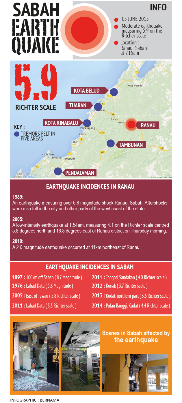 Meanwhile the Meterological Department of Malaysia (MetMalaysia) has issued a warning for residents in Ranau to be on alert for the next 24 hours for possible aftershocks.